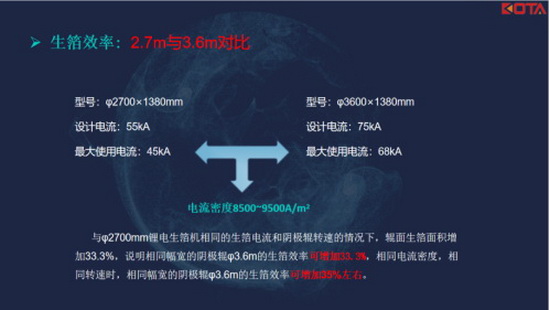 Например, с 2017 по 2019 год индустрия медной фольги лития в основном продвигала катодные ролики с диаметром 2,7 метра, и в настоящее время отрасль разрабатывает катодные ролики с диаметром 3,6 метра. При той же плотности тока и той же скорости эффективность производства фольги катодного ролика диаметром φ3,6 м и той же ширины может быть увеличена примерно на 35% по сравнению с катодным роликом с диаметром φ2,7 м.