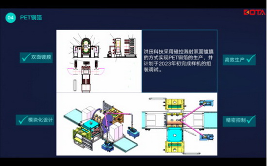 В ответ на это, технология KOTA использует магнетронную текущую технологию двухстороннего покрытия и завершает точный контроль процесса производства медной фольги с помощью модульной конструкции. Он планирует завершить сборку и отладку прототипа в начале 2023 года, и ожидается, что в марте в следующем году он будет производить образцы медной для животных.