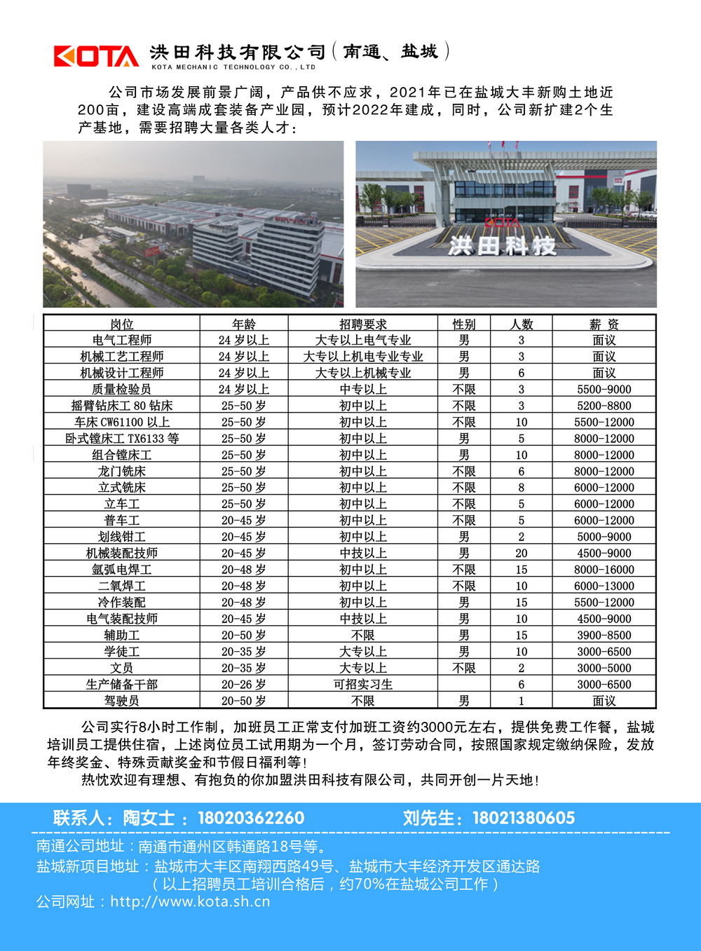 Yancheng New Project Адрес: № 49, Nanxiang West Road, Dafeng District, Yancheng City, Tongda Road, Dafeng Economic Development, Yancheng City (после того, как вышеупомянутые набранные сотрудники имеют квалификацию по обучению, около 70% будут работать в компании Yancheng)